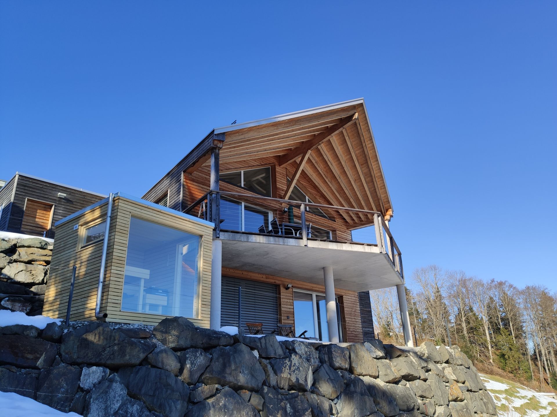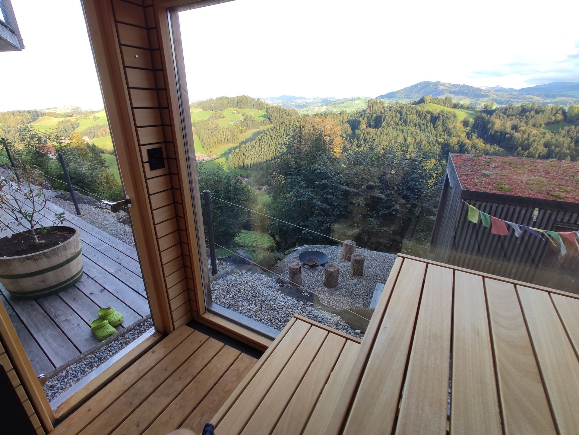 Als Hausherr haben Sie Zugang zur Panorama-Sauna im Garten (gegen Aufpreis). Der Ausblick ist genauso grossartig, wie der vom Sofa aus.