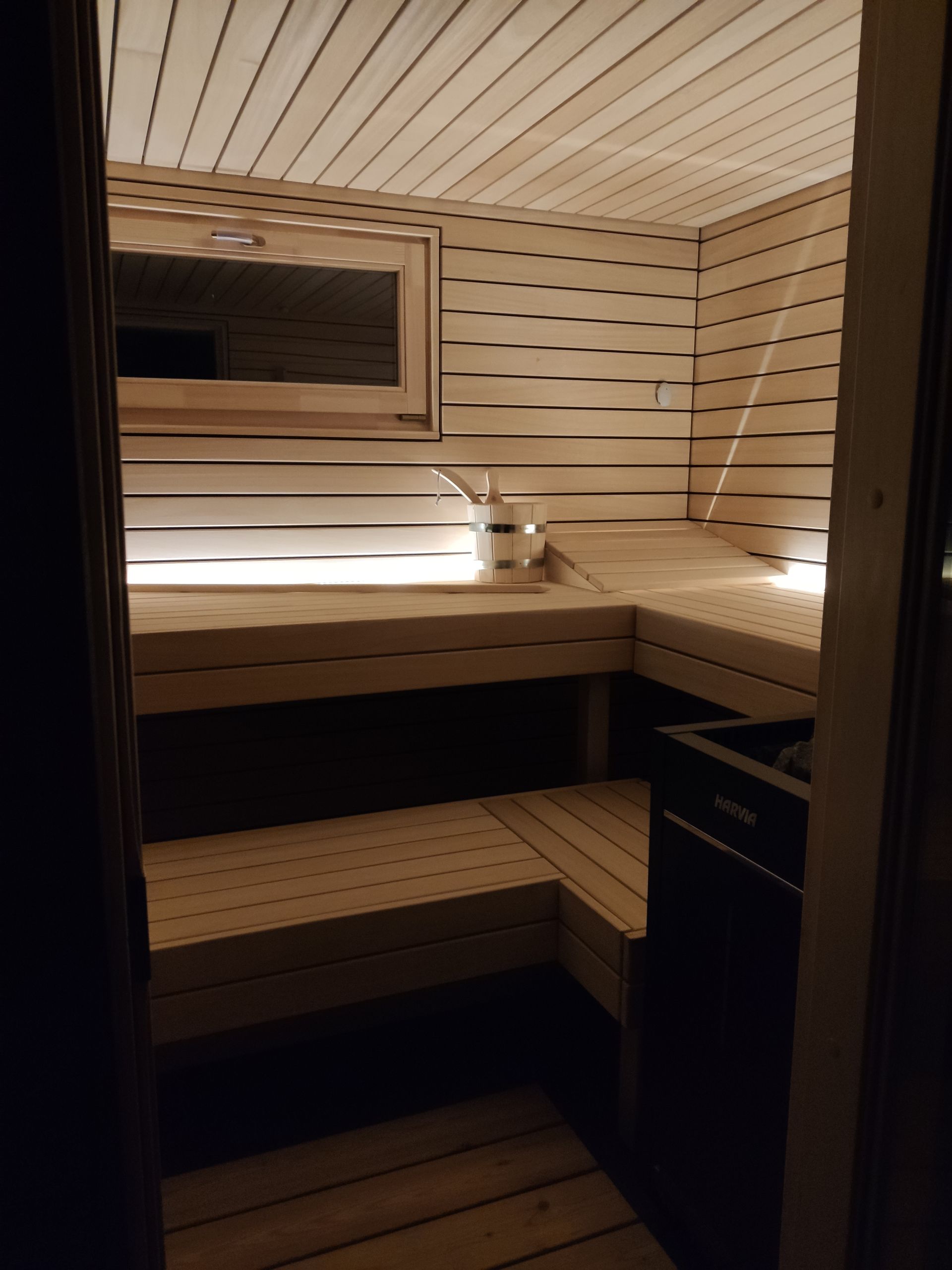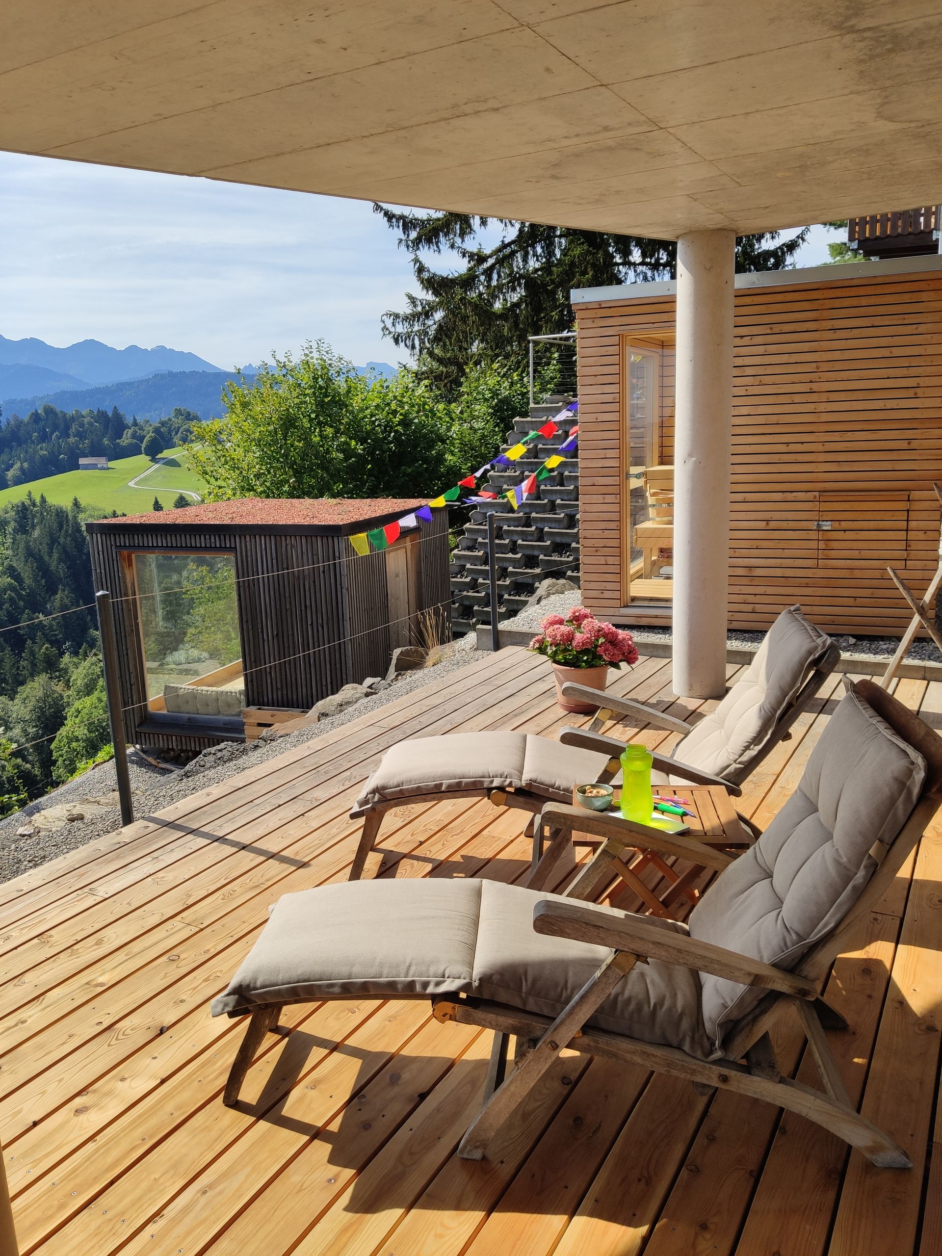 Als Hausherr haben Sie Zugang zur finnischen Panorama-Sauna im Garten (gegen Aufpreis). Der Ausblick ist genauso grossartig, wie der vom Sofa oder von der Terrasse aus.