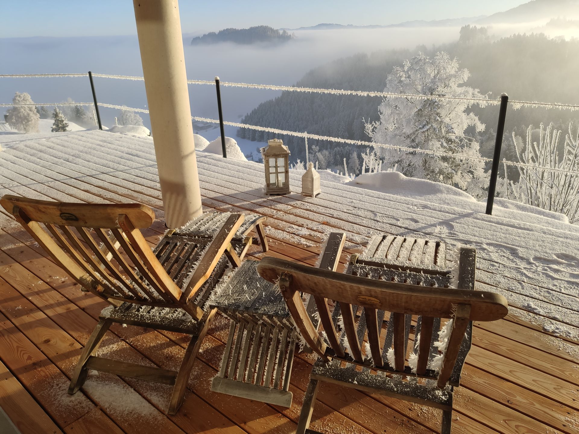 Nicht nur die Schaukel auf der Terrasse lässt sie "fliegen", und Kindheitserinnerungen werden wach, auch die Weitsicht erinnert an einen Adlerhorst und erfüllt Sie mit dem Gefühl von Leichtigkeit und Ruhe.